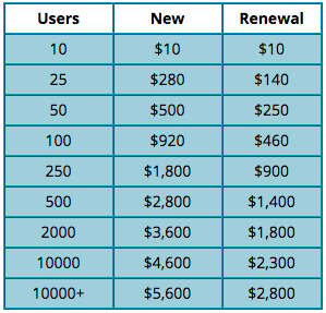 NOTE: As always, Renewal Prices are 50% of the New Purchase Price.